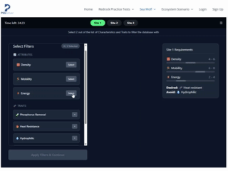 The Sea Wolf is a new game introduced by McKinsey in spring 2024 as part of its official assessment, played after the Solve and Redrock tests, and contributing to the final score. In the game, players design microbial treatments for 3 ocean sites, aiming to match each site’s ideal characteristics with a combination of three selected microbes. The gameplay, repeated 3 times with different parameters, emphasizes strategic selection and alignment of traits, following a distinct logic from the Solve game despite some superficial similarities.
